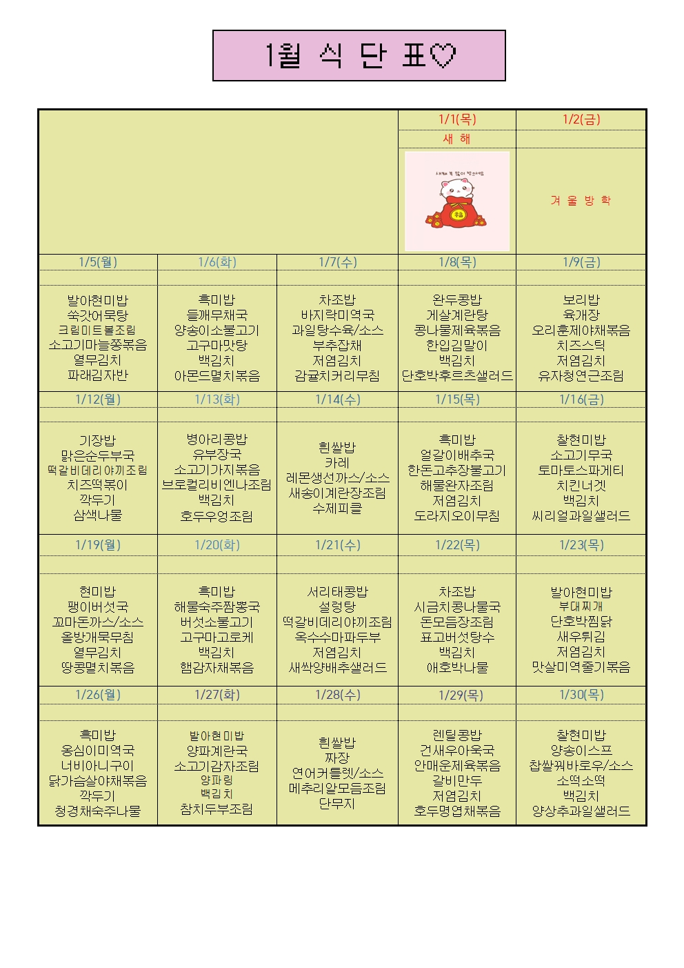 * À¯Ä¡ºÎ 01¿ù ½Ä´ÜÇ¥ *